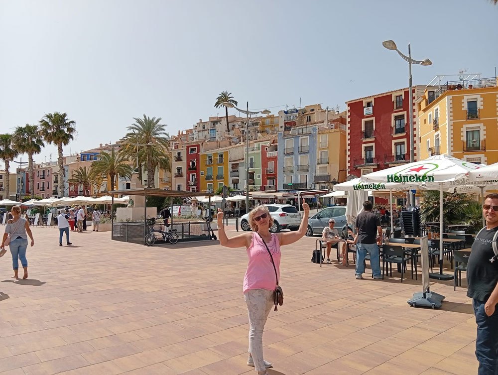 Auf der Rückfahrt legten wir noch einen Stopp in Villajoyosa ein. Unser Busfahrer bewies erneut Nerven aus Stahl und manövrierte uns durch enge Gassen bis fast an den Strand. Dort hatten wir zwei Stunden Zeit, die bunten Häuser, das Markenzeichen für Villajoyosa, zu bestaunen, gemütlich einen Kaffee zu trinken oder ein Eis zu genießen – ganz nach Geschmack.