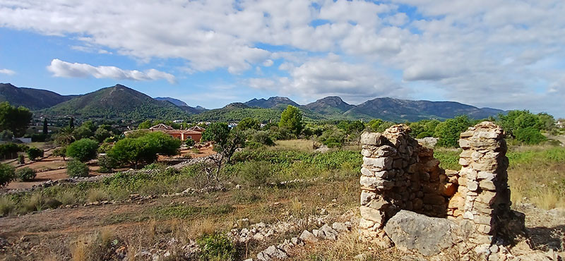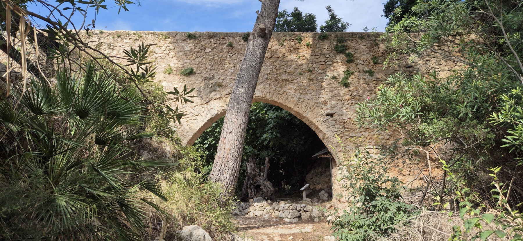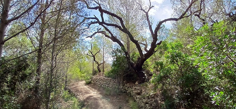 Bei der Quelle (Font de Gel), einer Quelle wo immer, auch bei längerer Trockenheit Wasser sprudelt bogen wir links in einen Weg ab. Danach auf einem Wanderpfad runter an der Muralla de Fontilles entlang, bis zu der Straße die nach Murla führt.