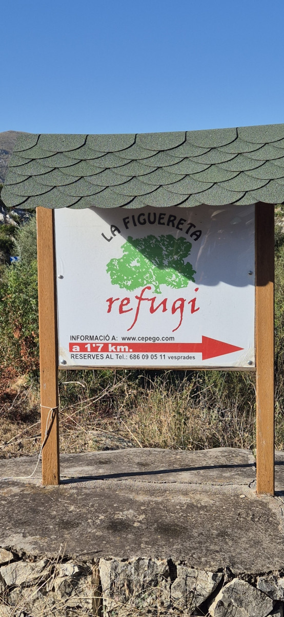An Trockensteinmauern, mal von Kräuterbüschen aus Rosmarin und Thymian geprägt, gelangten wir zu dem Refugi La Figuereta Pego.