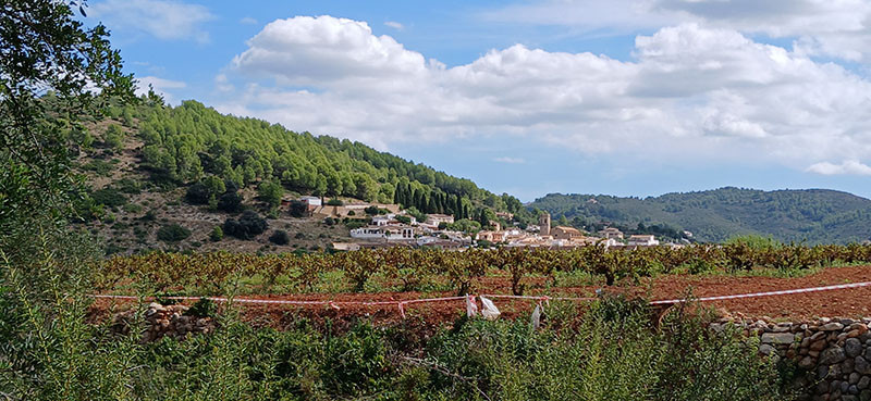Die Gegend um Teulada sieht ganz anders aus als bei Ondara, Els Poblets und Vergel. Statt Orangen und Zitrusplantagen hat es viele Weinreben die auf unzähligen Terrassenförmigen Feldern angelegt sind.
