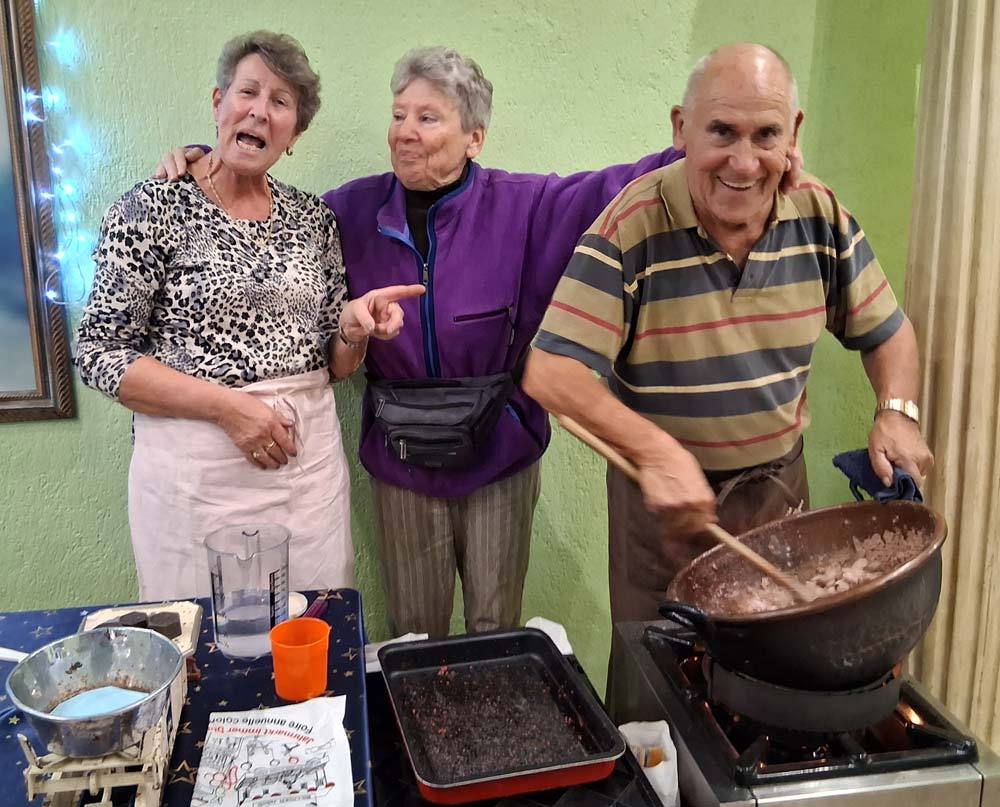 Der Duft von süßen Mandeln, wie jedes Jahr durch Esther und Freddy professionell gebrannt, zog alle in den Bann. Traurige Gesichter gab es, als schon alles ausverkauft war. Wir haben die letzte Tüte gemeinschaftlich leer geknuspert.