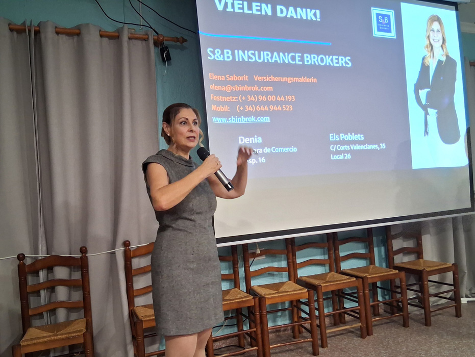 Sie präsentierte nicht nur die Pflichtversicherung für das Fahrzeug, die unterschiedlichen Situationen für Hausbesitzer und Mieter, Fahrradversicherung (Achtung e-bikes 2026), Haustier- und Rechtsschutzversicherung, sondern wies auch eindrücklich auf die Wichtigkeit einer in Spanien abgeschlossenen Krankenversicherung hin.